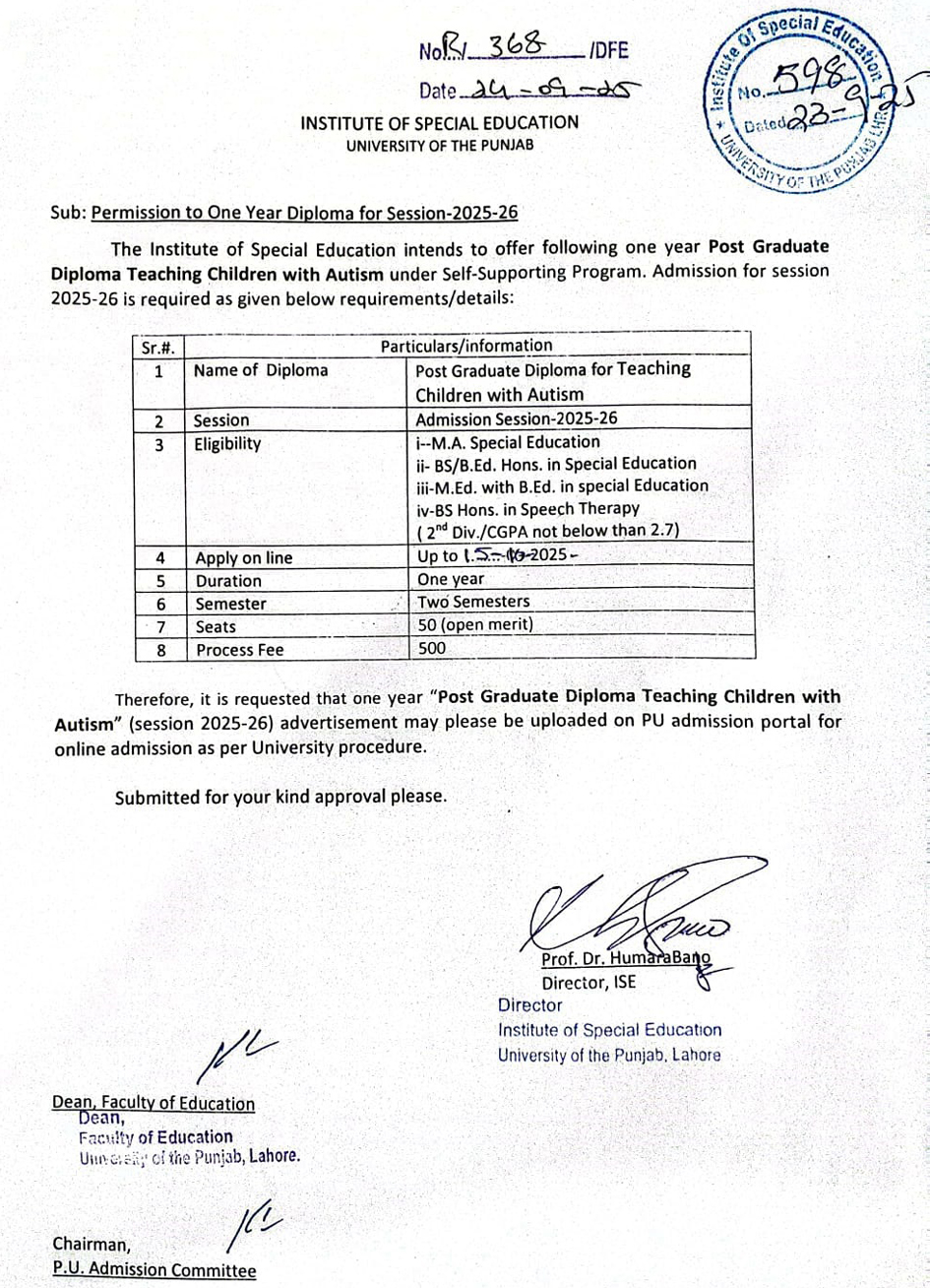 One Year Post Graduate Diploma Teaching Children with Autism Session 2025-26 One Year Post Graduate Diploma Teaching Children with Autism Session 2025-26 Back to page.