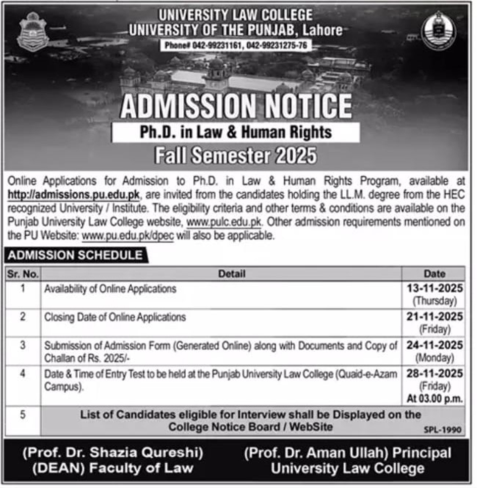 Admission Notice for Ph.D. in Law & Human Rights Fall Semester 2025 Admission Notice for Ph.D. in Law & Human Rights Fall Semester 2025 Back to page.