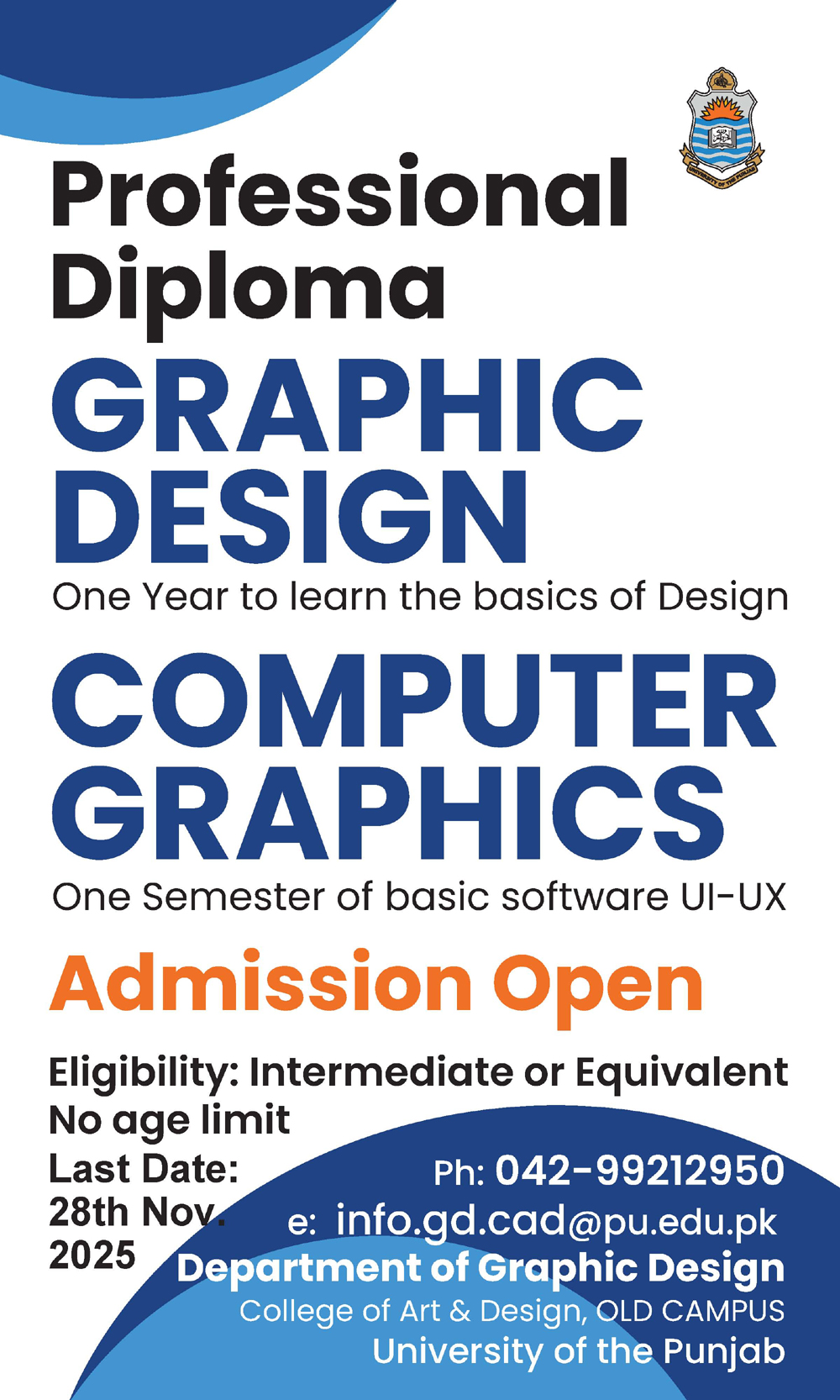 Admissions Open in Professional Diploma in Graphic Design 2025 Admissions Open in Professional Diploma in Graphic Design 2025 Back to page.
