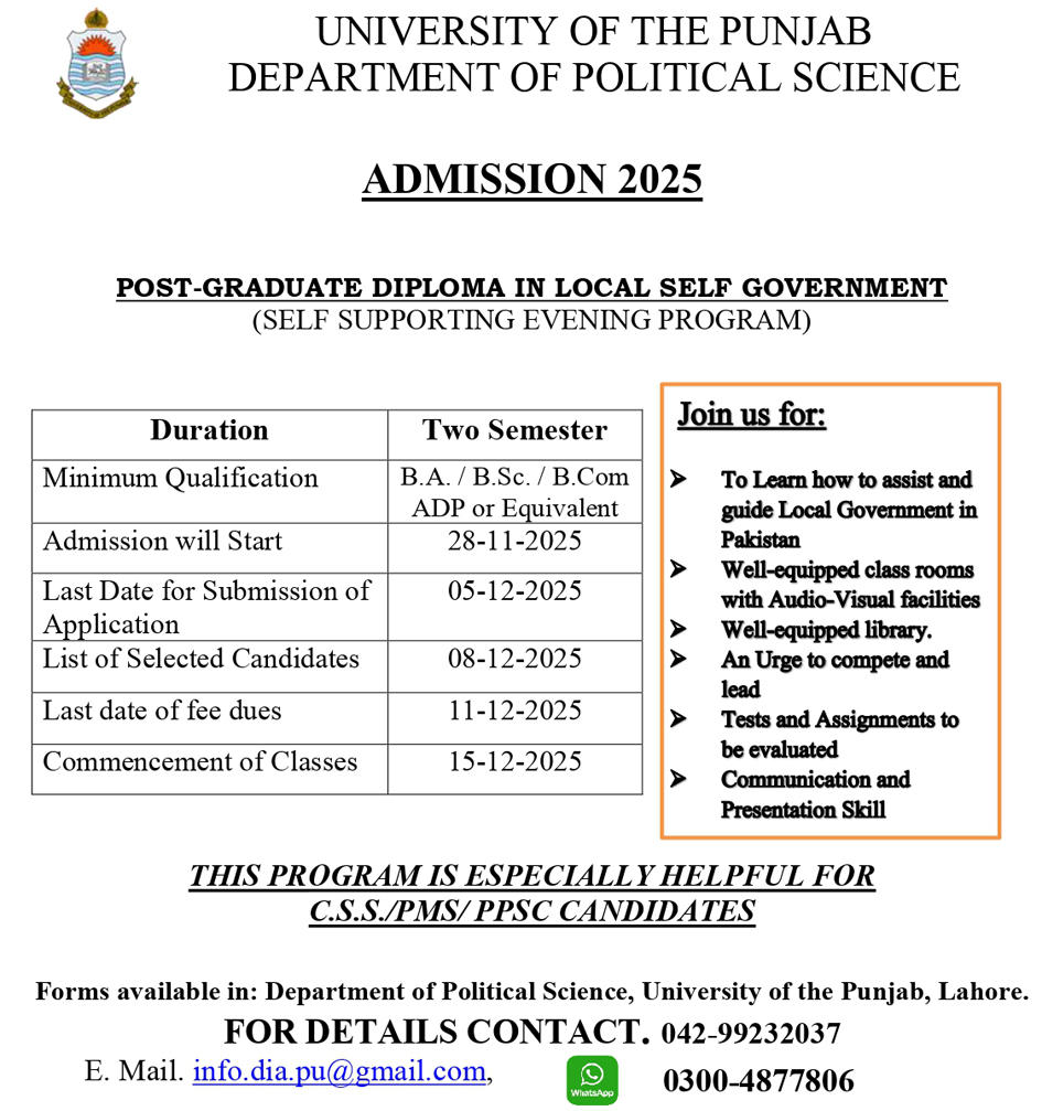 Admission Notice for Post-Graduate Diploma in Local Self Government (Self Supporting Evening Program) 2025