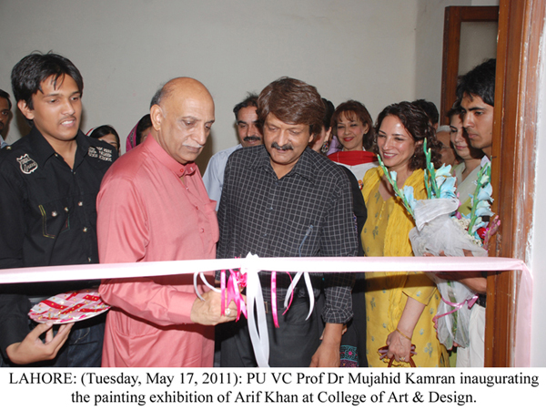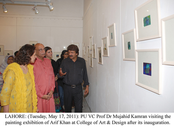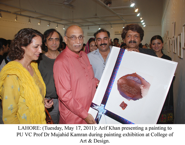 LAHORE : (Tuesday, May 17, 2011): Punjab University Vice-Chancellor Prof Dr Mujahid Kamran inaugurated the painting exhibition of College Lecturer Arif Khan in the Anna Molka Art Gallery of PU College of Art & Design here at Old Campus on Tuesday. College Principal Prof Dr Rahat Naved Masud, faculty members and a large number of students were also present on the occasion. Addressing on the occasion, Vice-Chancellor Dr Mujahid Kamran said aesthetic sense of human made him different from other living things. He said such exhibitions made pleasant impact and helped human develop creativity in them. He said the students love calligraphy and painting and they always learnt a lot by such exhibitions and art-lovers get an opportunity to observe the things with keen interest. College Principal Dr Rahat Naved Masud said Arif Khan was a polite teacher, painter, and the work of Arif Khan was very well respected in the market. She said design and painting both came in calligraphy. Arif Khan briefed the audience about the objective of holding the exhibition. Tweet Follow @pu_lhr_official |