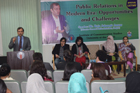 The lecture on the topic “Public Relations in modern era: Opportunities and Challenges” was organized by PU ICS Public Relations Society. ICS In-charge Director Dr. Nosheena Saleem, faculty members and a huge number of students of ICS were present. Answering questions based on criticism of centralization of development policies of Punjab Government in Lahore, including Orange Line Train, Metro Bus and other developmental programs, the DGPR said it was imperative to work on development of five sectors simultaneously as per the modern development approach. He said, ‘Metro Projects have not only been launched in Lahore but Rawalpindi and Multan as well, and Orange Line Train would also be started in Sialkot and other cities. Raja Jahangir advised students to develop reading habits and to ameliorate their communication skills. In-charge Director Dr Nosheena Saleem presented a bouquet and thanked Raja Jahangir Anwar.