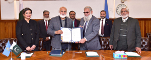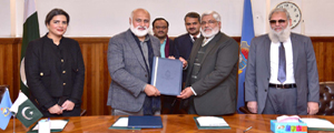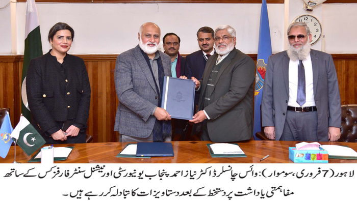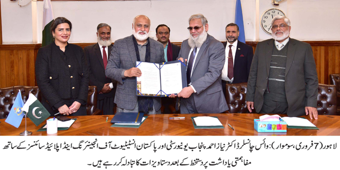 LAHORE: (Monday, February 7, 2022): Punjab University has signed two memorandums of understanding to promote bilateral relations with several organizations. In this regard, a ceremony was held at Vice Chancellor’s office to sign the agreements with Pakistan Institute of Engineering and Applied Sciences and National Centre for Physics. The ceremony was attended by PU Vice Chancellor Prof Niaz Ahmad, External Linkages Director Dr Sobia Khurram, PIEAS Pro Rector Dr Naseem Irfan, NCP DG Dr Mansoor Hameed Inayat and others. The heads of the organizations discussed various issues of mutual interest and stressed the need to enhance cooperation with each other for promotion of science and technology for socio-economic development of the country. Tweet Follow @pu_lhr_official |