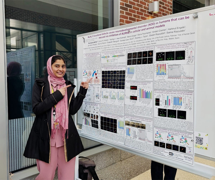 ![]() CEMB-University of the Punjab proudly congratulates Ms. Tehmeena Akhter on winning First Prize for her poster presentation at “The BioFestival”, held at the Institute for Genome Sciences (IGS), University of Maryland USA, on October 17, 2025. The event was organized in partnership with Zymo Research. Tehmeena presented her Ph.D. thesis project, which received exceptional recognition from all judges in a highly competitive selection process. Her award includes a $1,000 research grant and a $300 cash prize. ![]() This achievement is a testament to the outstanding mentorship of Prof. Dr. Saima Riazuddin, Adjunct Professor at University of the Punjab- CEMB and faculty member at the University of Maryland USA, under whose supervision Tehmeena conducted her research. Prof. Riazuddin’s continued guidance and collaboration have been instrumental in nurturing young scientists and strengthening research ties between CEMB and the University of Maryland, USA. CEMB extends heartfelt congratulations to Ms. Tehmeena Akhter and Prof. Dr. Saima Riazuddin for this remarkable accomplishment that brings pride to their mentors, collaborators, and institution. Tweet Follow @pu_lhr_official |