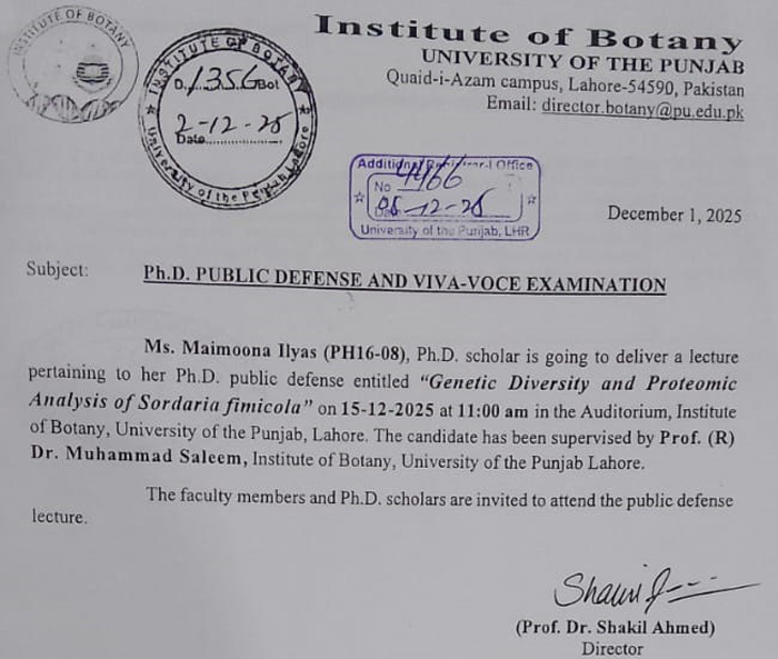 Ph.D. Public Defense and Viva Voce Examination of Ms. Maimoona Ilyas
