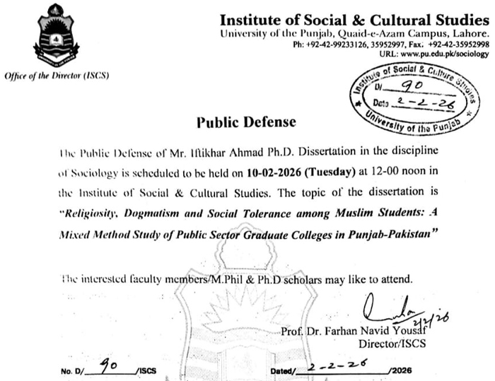 Ph.D. Public Defense and Viva Voce Examination of Mr. Iftikhar Ahmad