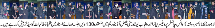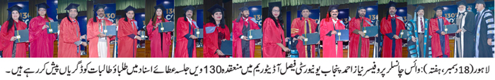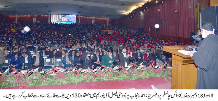 LAHORE: (Saturday, December 18, 2021): Punjab University Vice Chancellor Prof Niaz Ahmad has urged the students to understand their responsibilities and contribute towards the development of Pakistan as well as society. He was addressing the 130th Convocation of Punjab University organized at Faisal Auditorium here on Saturday. ![]() Pro Vice Chancellor Prof Dr Muhammad Saleem Mazhar, Registrar Dr Muhammad Khalid Khan, Controller of Examinations Muhammad Rauf Nawaz, Additional Controller Raja Shahid Javed, members of Senate, Syndicate, senior faculty members and a large number of students participated in the event. ![]() Addressing the ceremony, Prof Niaz Ahmad said that rigorous efforts had been put in higher education institutions of Pakistan due to which they were making rapid progress in the world. Otherwise, he said, the universities in Pakistan could have faced the same fate which our other national public sector institutions were suffering from. He said that it was his dream to bring PU among the top 500 institutions of the world and he started efforts for this in 2018. He said that in 2018, PU’s position in Asian ranking of the universities by QS was 232nd while in 2021, PU had been declared 145th best university in Asia among thousands of universities. He said in 2018, PU was counted among top 78 percent universities of the world and now in 2021, PU had performed among top 62 percent universities of the world, which was a great achievement as it was difficult to improve even one percent when one was competing at international level where all were making efforts to progress. ![]() He said that for the first time in 2018, PU’s 3 subjects were ranked at international level and now in 2021, Punjab University had become the only university in Pakistan whose 13 subjects had been ranked and in the subject of petroleum engineering, PU had been ranked among top 100-150 institutions in the world. He said that for these landmark achievements, a number of initiatives had been taken in the university. He said that for the first time, the university was being run by statutory bodies and their regular meetings were being held as per the requirements of the university calendar. He said that 7 meetings of PU Senate had been organized in 3 and a half years while in the recent past, a gap of 8 to 10 years could be witnessed between the two meetings of the Senate. He said that the number of professors and associate professors had never crossed the figure of 70 each but now we have more than 150 professors and 150 associate professors at the same time. He said that the university had given special attention to those research projects which aimed at solving socio-economic problems and contributed towards national development. He said that for the first time, regular appointments of professionals had been made on the most coveted administrative posts of Registrar, Controller, Resident Officer 1 etc through advertisement and teachers had been relieved from such assignments. ![]() He said that the appointment of Pro Vice Chancellor had also been ensured to create a second leadership. He urged the students to become a civilized and a law-abiding citizen and adopt good behavior with parents, relatives and colleagues. He said that they must make efforts to make the institutions profitable wherever they would work. He congratulated all the graduating students and their parents. Prof Dr Saleem Mazhar said that the administration had ensured academic freedom on campus and now teachers and students work in an independent atmosphere. He said that it was a moment of joy that such activities were now being held and prayed that the world may get rid of the menace of Covid 19 soon. Later, PU VC Prof Niaz Ahmad presented a special souvenir to Registrar Dr Muhammad Khalid Khan for his services in the university as he would retire on December 31. ![]() Tweet Follow @pu_lhr_official |