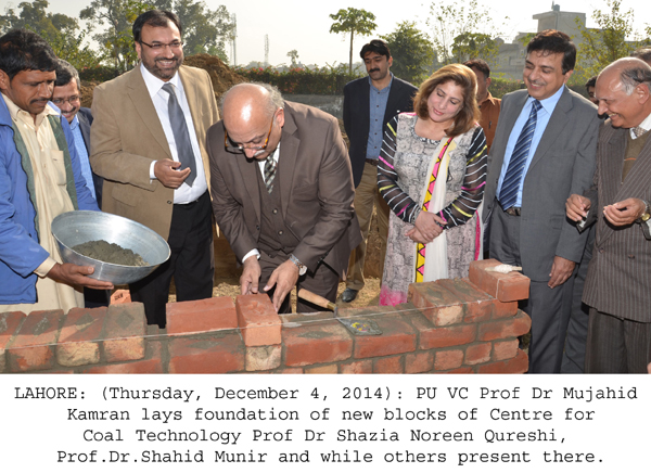 LAHORE: (Thursday, December 4, 2014): Punjab University Vice Chancellor Prof Dr Mujahid Kamran has laid foundation stone of expansion project of Centre for Coal Technology at New Campus here on Thursday. A ceremony was organized at the centre’s lawns in which Dean Faculty of Law Prof Dr Shazia Naureen Qureshi, Dean Faculty of Engineering and Technology Prof Dr Taqi Zahid Butt, Director Centre for Coal Technology Prof Dr Shahid Munir, Dean Faculty of Behavioral and Social Sciences Prof Dr Zakria Zakir, heads of various institutions and students were present on the occasion. Addressing the ceremony, Dr Mujahid Kamran said that the United States wanted to occupy all the energy resources of the world and wanted to deprive his enemies from their own energy resources. He said that after 9/11, the US forces occupied energy resources of various countries. Addressing the ceremony, Dr Shahid Munir said that the resources of coal were future of Pakistan as the coal reservoirs were estimated at 27 trillion dollars, more than the cost of oil of Saudi Arabia and Iran. He said that if we become able to use our coal reservoirs, the destiny of the nation would change. He said that CCT had played key role in all the coal projects being launched by the government. He said that after completion of this project, CCT would become the best institution in South Asia in coal technology. He said that 5 state-of-the art libraries would be set up at the centre. He announced that CCT would also launch PhD program next year. Tweet Follow @pu_lhr_official |