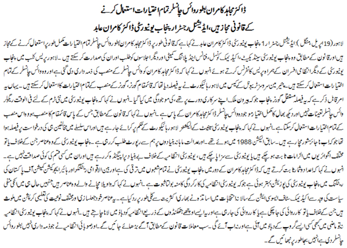 Dr. Mujahid Kamran, as Vice Chancellor is authorized to use all options. Dr. Kamran Abid (Additional Registrar, PU) Tweet Follow @pu_lhr_official