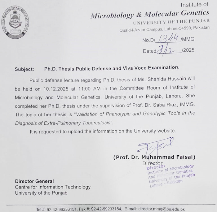 Ph.D. Public Defense and Viva Voce Examination of Ms. Shahida Hussain