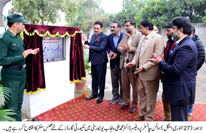 LAHORE: (Tuesday, January 27, 2026): Punjab University Vice Chancellor Prof Dr Muhammad Ali inaugurated a fitness center for security guards at PU. The inauguration ceremony was attended by DG Dr Rehan Sadiq Shaikh, Chairman Hall Council Prof Dr Muhammad Akbar Khan, DSA Dr Shahzeb Khan, Resident Officer-II Dr Abdul Majid Khan, Chief Security Officer Col (r) Tanveer Ashraf Bhatti and others. On the occasion, PU VC Prof Dr Muhammad Ali said that physical and mental fitness is essential for carrying out daily official duties. He added that steps are being taken to further improve security at PU. Dr Rehan Sadiq stated that the purpose of establishing the fitness center at Punjab University is to keep security guards healthy and energetic. He said that under the leadership of VC Prof Dr Muhammad Ali, efforts are being made to provide a conducive environment for the university community.