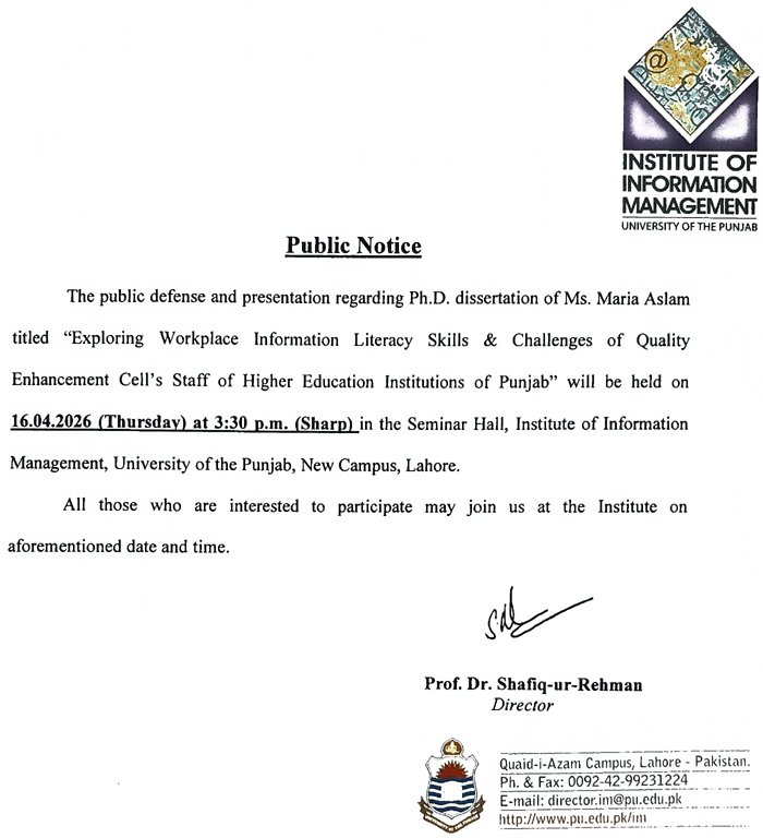 Ph.D. Public Defense and Viva Voce Examination of Ms. Maria Aslam
